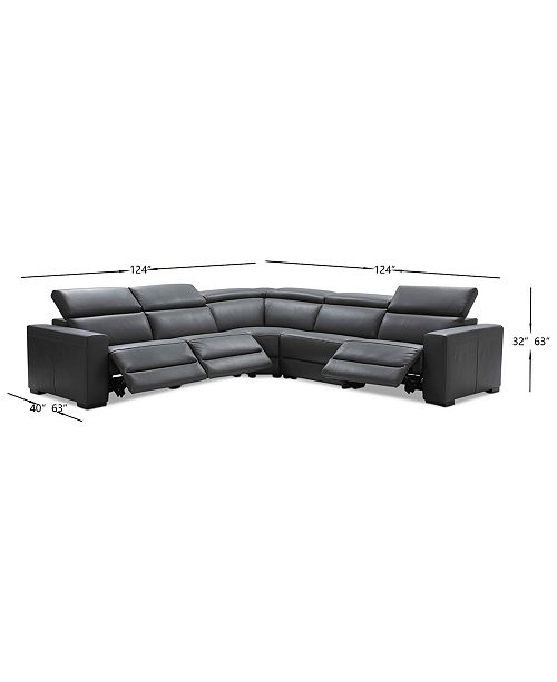 Nevio 5 Pc Leather L Shaped Sectional Sofa With 3 Power Recliners And Articulating Headrests Created For Macy S