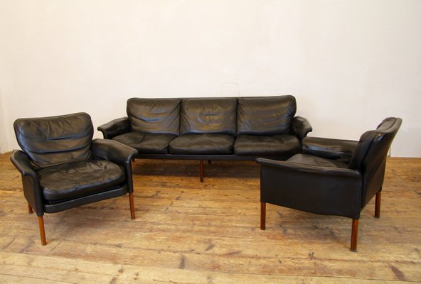 Aniline Leather And Palisander Sofa 2 Armchairs From Wittmann 1960s