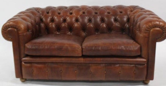 Chesterfield Leather Tufted Vintage Sofa Brass Nailhead Trim