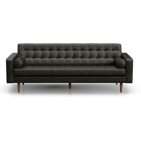 Oscar Modern Tufted Faux Leather Sofa Licorice Black Af Lifestlye