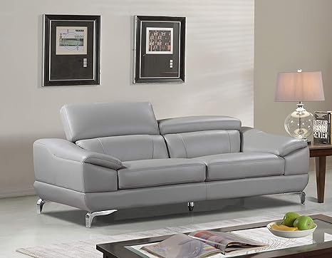 Cortesi Home Vegas Genuine Leather Sofa With Adjustable Headrests Gray