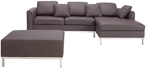 Beliani Oslo Modern Leather Sofa With Chaise And Ottoman Brown