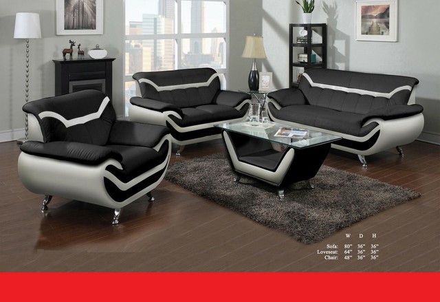 Beautiful Living Room 2pc Sofa And Loveseat Black Bonded Leather Plush Couch