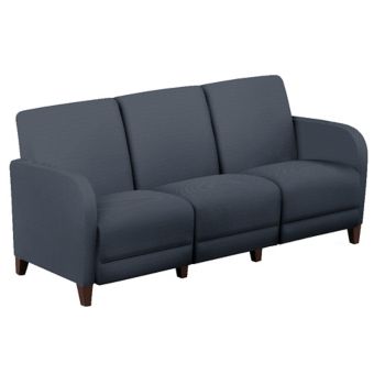 Boasting a rich faux leather upholstery and a deep walnut finish the three seater sofa meshes well into a variety of design styles.