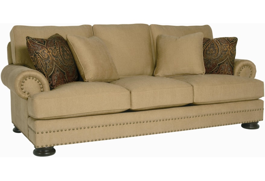 Wood nailhead finishes. The henderson sofa by bernhardt interiors offers a truly classic design featuring a tasteful wooden trim sloped arms tufted cushions and sleek build.