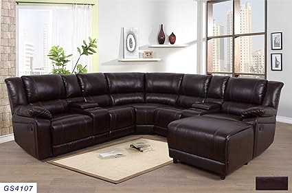 Lifestyle Furniture 5 Pieces Recliner Sectional Sofa Set With Push Back Chaise 2 Cup Holder Consoles With Lift Up Storage Brown Bonded