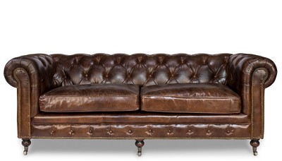 Bain Vintage Espresso Leather Tufted Sofa 75