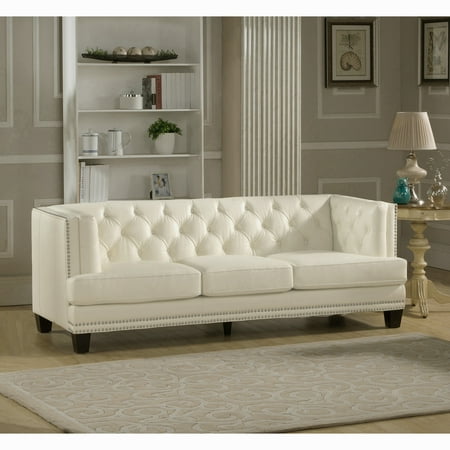 Mona Sofa In Tufted Ivory White Top Grain Leather W Nailhead Trim By Jane Leather Craft Furniture