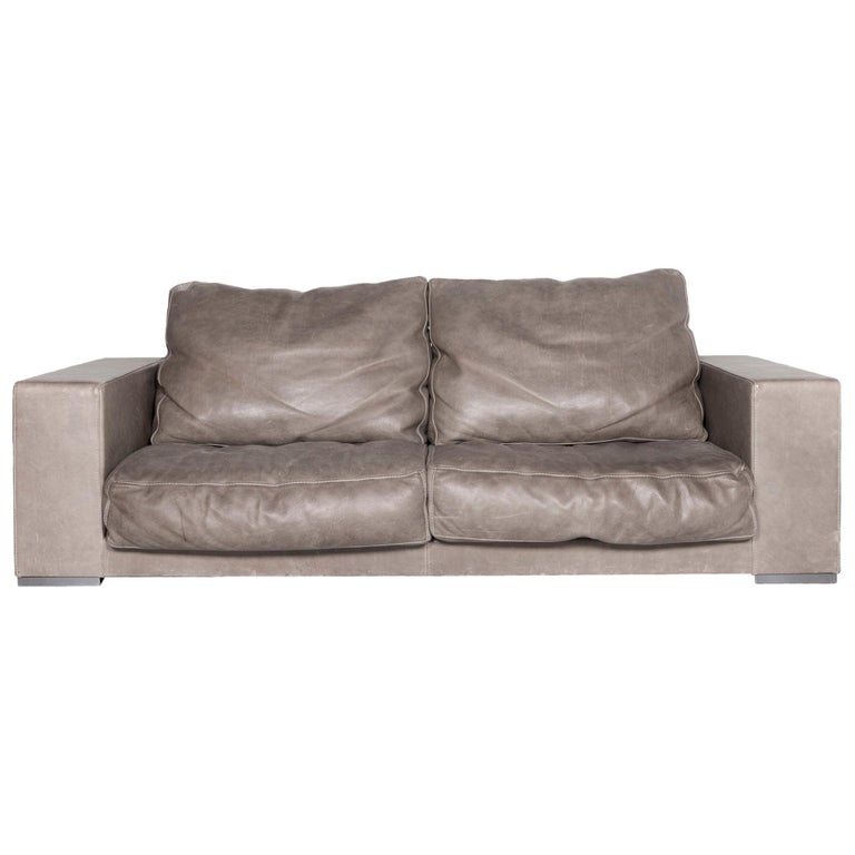 Baxter Budapest Designer Leather Sofa Gray Three Seat Couch