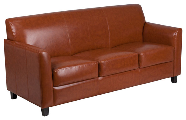 Offex Contemporary Cognac Leather Sofa With Plush Seat And Back