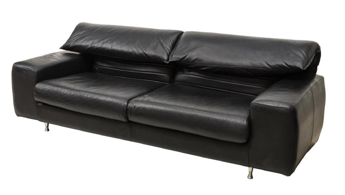 D143 Sale Danish Mid Century Modern Black Leather Sofa