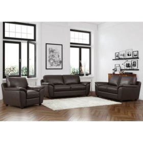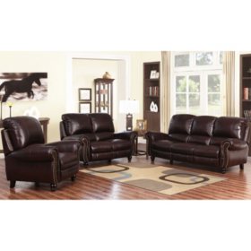 2pc Evan Top Grain Leather Sofa Loveseat Set Brown Abbyson Living