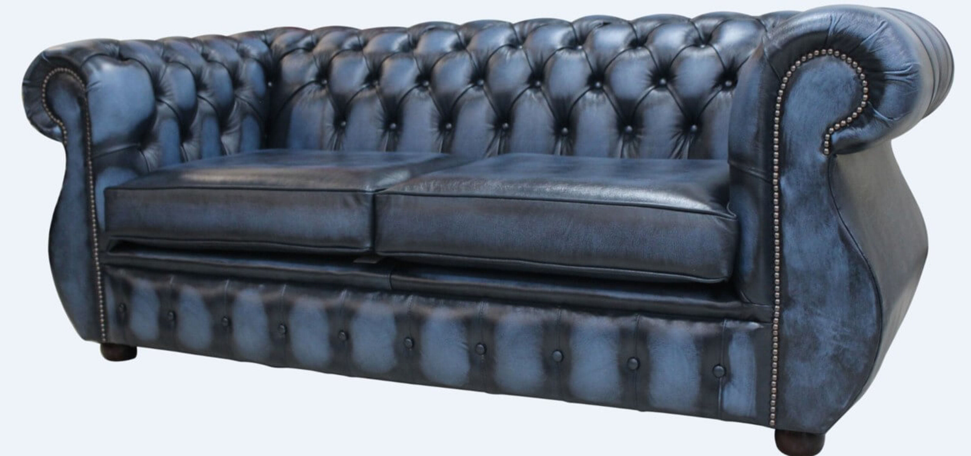 Blue Leather Chesterfield 2 5 Seater Sofa Designersofas4u