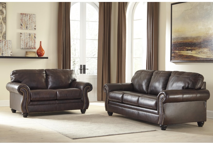 Ashley Furniture Signature Design Banner Traditional Faux Leather Sleeper Sofa Queen Size Mattress Included Coffee