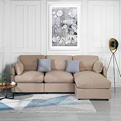 Beige Upholstered Linen Sectional Sofa Couch Modern L Shape Sectional Sectional Sofas And Couches Sofa Couch With Chaise For Small Large Living