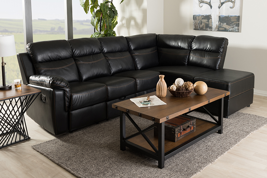 Baxton Studio Roland Modern And Contemporary Black Faux Leather 2 Piece Sectional With Recliner And Storage Chaise