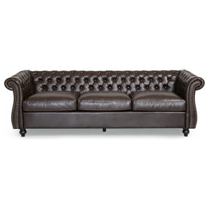 Vita Chesterfield Tufted Faux Leather Sofa With Scroll Arms Brown