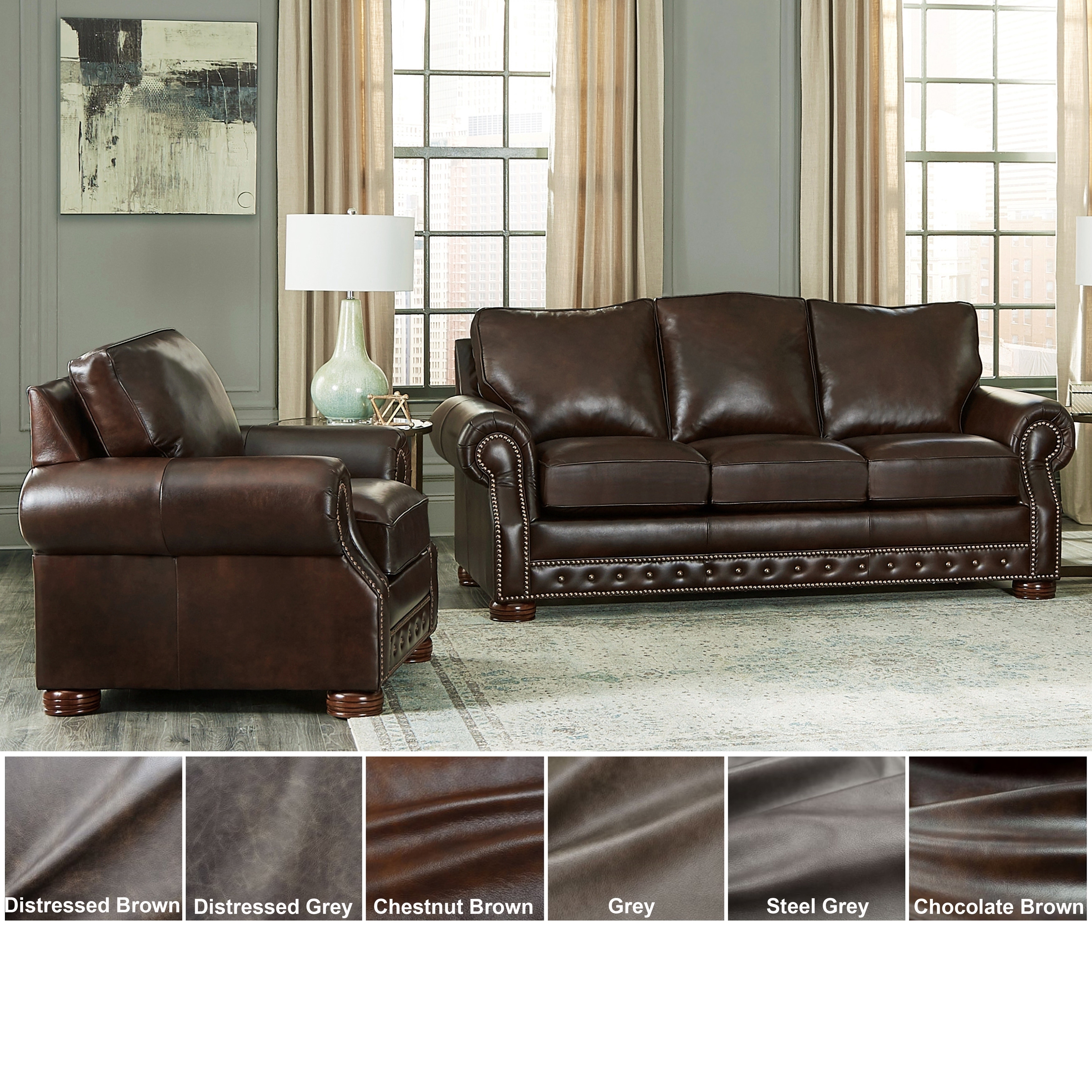 Made In Usa Porto Top Grain Leather Sofa And Chair