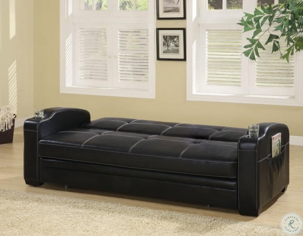 Faux Leather Sofa Bed With Storage And Cup Holders
