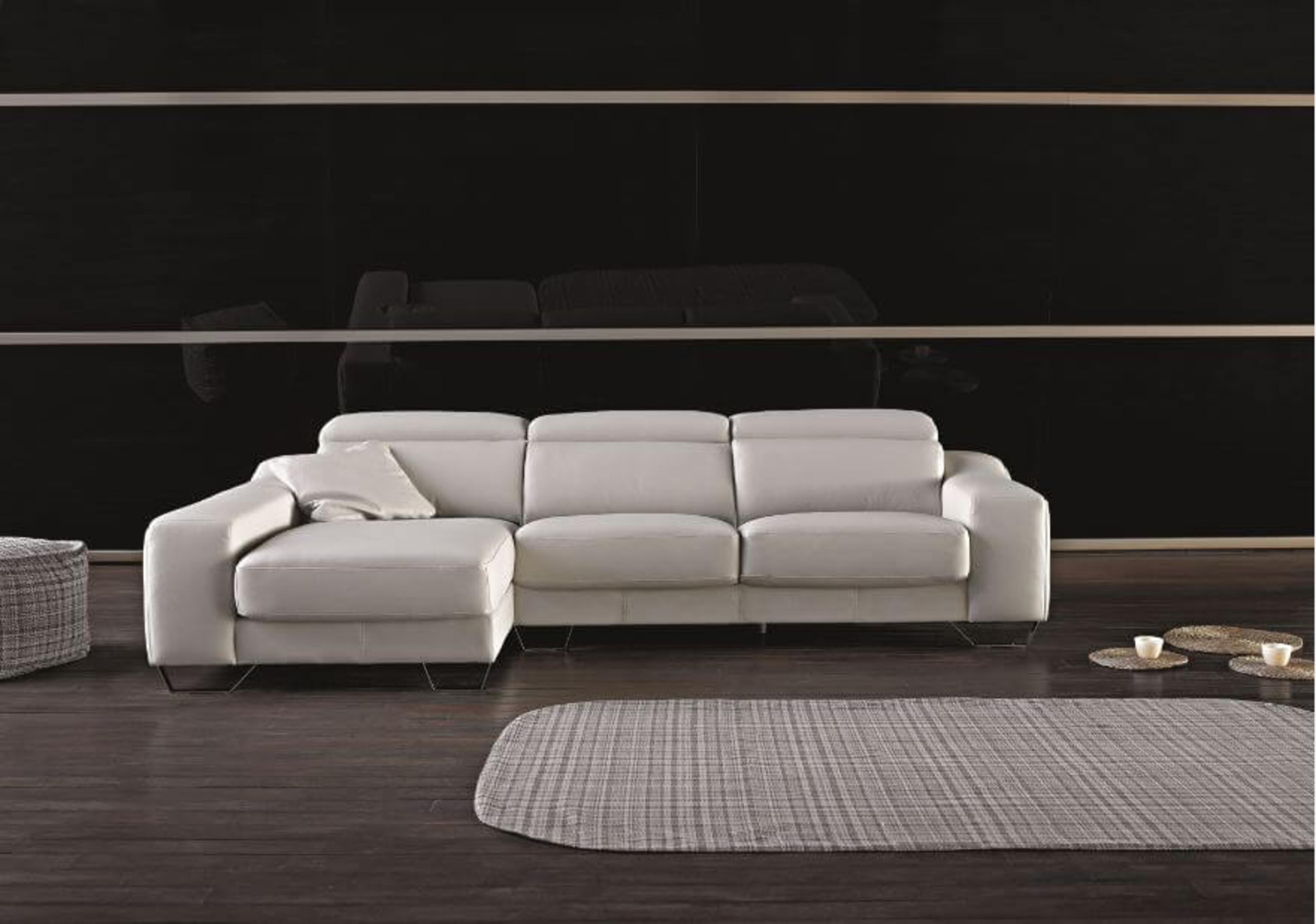 Seriena W Series L Shape Sectional Sofa With Chase Lounge In White Top Grain Leather