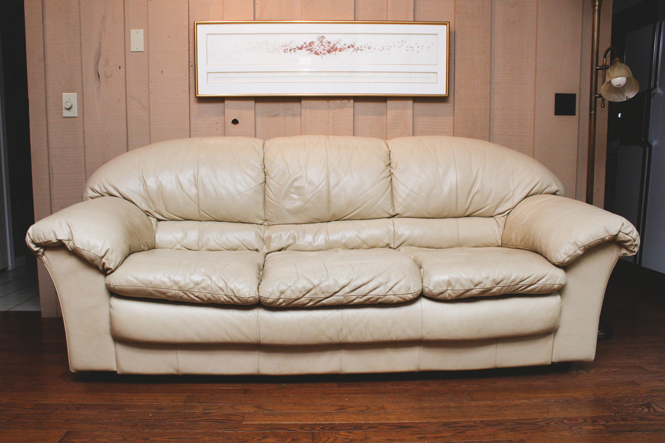 2 Seater Cream Leather Sofa And Recliner Armchair Depop