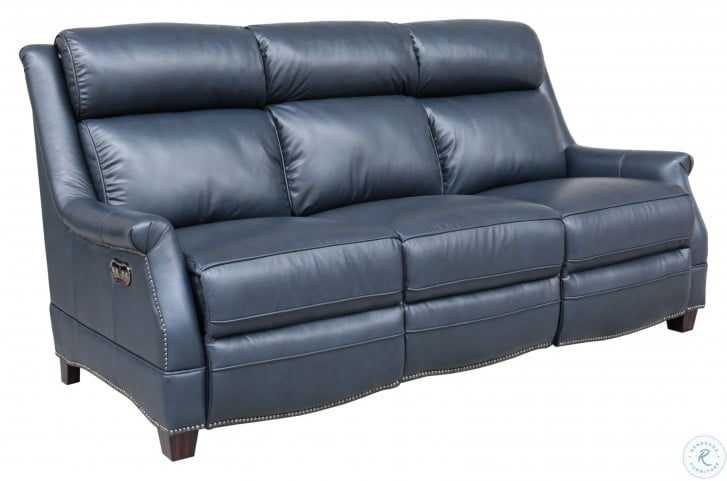 Warrendale Shoreham Blue Leather Power Reclining Sofa With Power Headrest