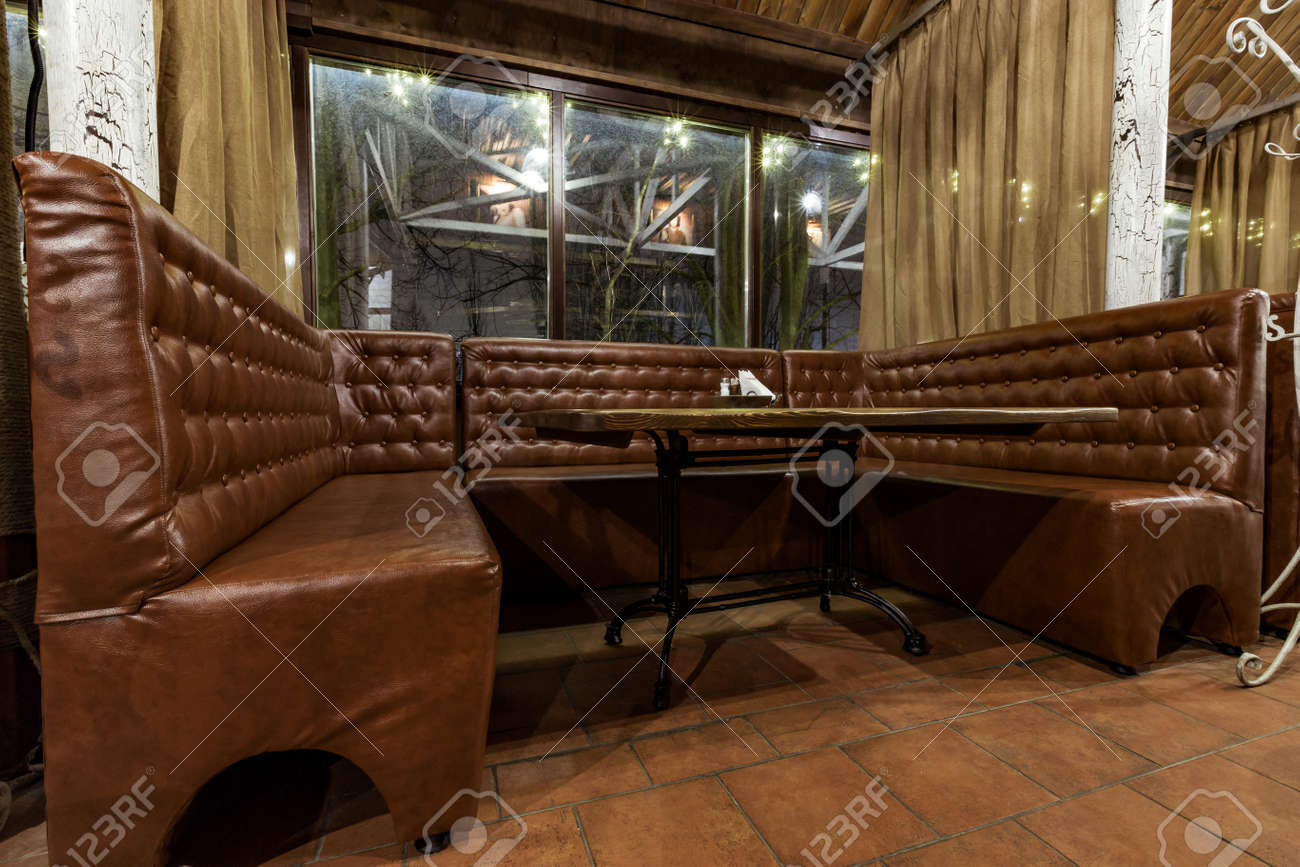 Empty Table With Leather Sofa In The Restaurant Comfortable