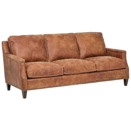 Stone Beam Marin Leather Nailhead Studded Sofa Couch 87 W Saddle Brown