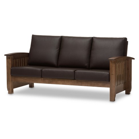 Baxton Studio Baxton Studio Chalice Modern Classic Mission Style Walnut Wood Dark Brown Faux Leather 3 Seater Sofa Brown From Amazon Martha Stewart