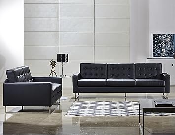 Beechwood Mid Century Modern Black Leather Sofa Couch With Button Tufted Backs