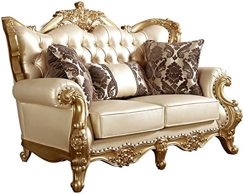Traditional Meridian Furniture Burgundy Bonded Leather Living Room Sofa Loveseat 2pc Set Rich Cherry Wood