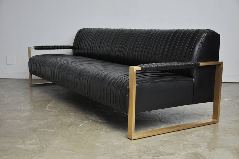 Modern Drama Pleated Leather Sofa With Brushed Brass Frames