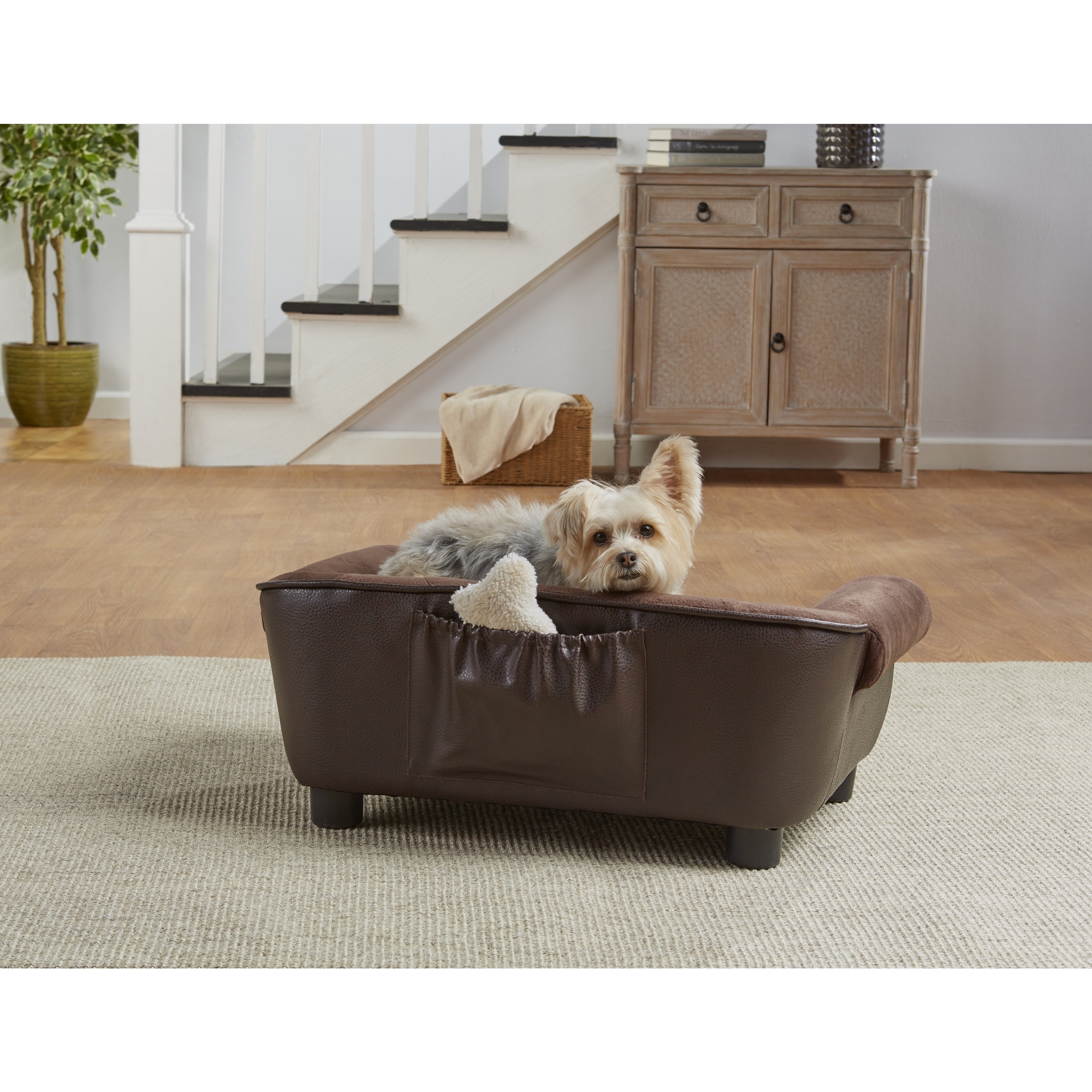 Enchanted Home Pet Cleo Brown Faux Leather Microfiber Pet Sofa Bed