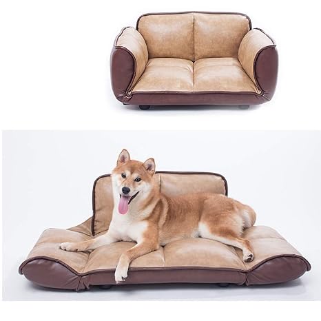 Joe S Home Luxury Leather Pet Dog Sofa Bed Adjustable Stylish Memory Foam Couch Pet Bed For Small Medium Dogs Cats 28 4 X 23 6 X 14 6 Brown
