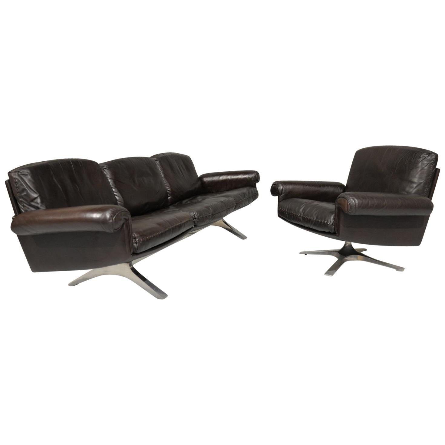 Vintage De Sede Ds 31 Leather Sofa And Swivel Armchair Switzerland 1970s