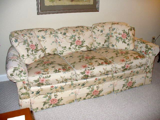 Pennsylvania House Pillow Back Triple Cushion Sofa In A Rose And Leaf Design