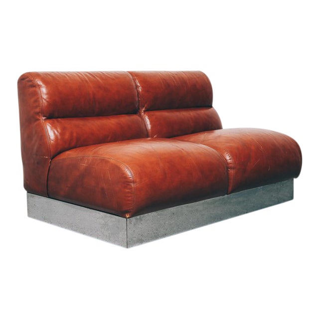 Vintage Leather And Chrome Loveseat