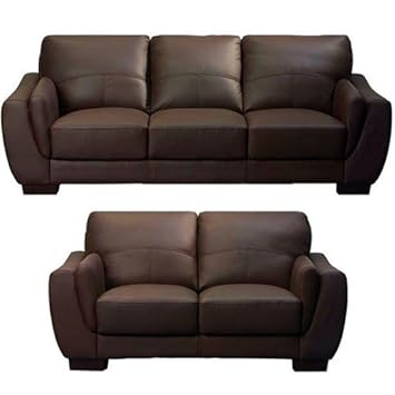 Carson Leather Sofa Suite 3 2 Seater Dark Brown Amazon Co