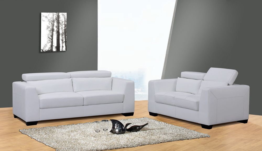 J M Furniture Soho White Leather Sofa Loveseat With Adjustable Headrests Sofa Set 2 Pcs