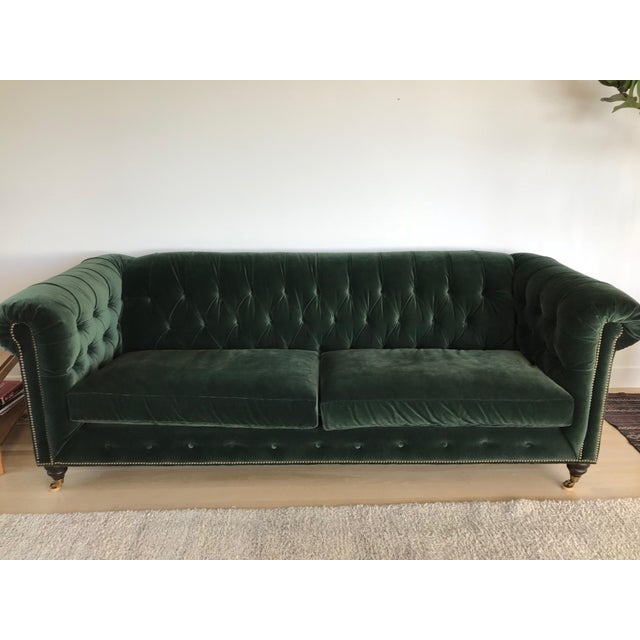 Forest Green Velvet Lyre Chesterfield Sofa From Anthropologie