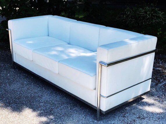 Mid Century Modern Le Corbusier Lc2 Three Seat Leather Sofa