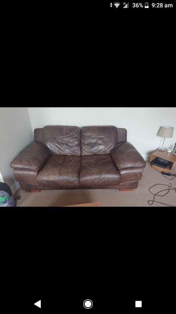 Second Hand 2 Seater Brown Leather Sofa In Sidcup London