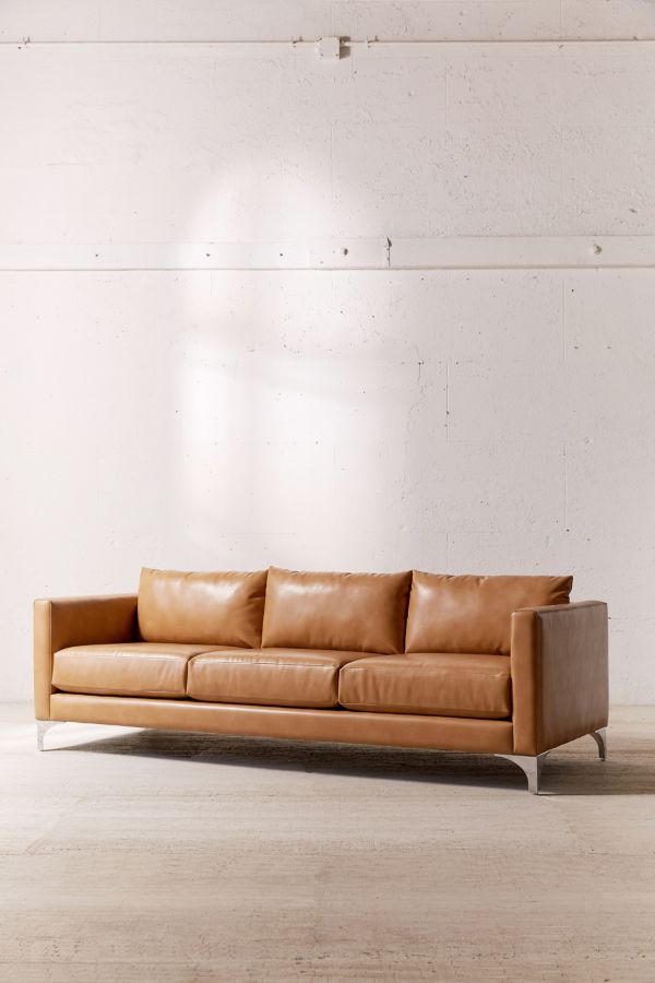 Chamberlin recycled leather sofa reviews. Shop for chamberlin recycled leather sofa brown one size at urban outfitters amazing deals from urban outfitters. In a clean retro inspired silhouette made modern with structural metal feet its the perfect centerpiece for any living space. Timeless sofa handcrafted in the usa from 100 recycled leather.