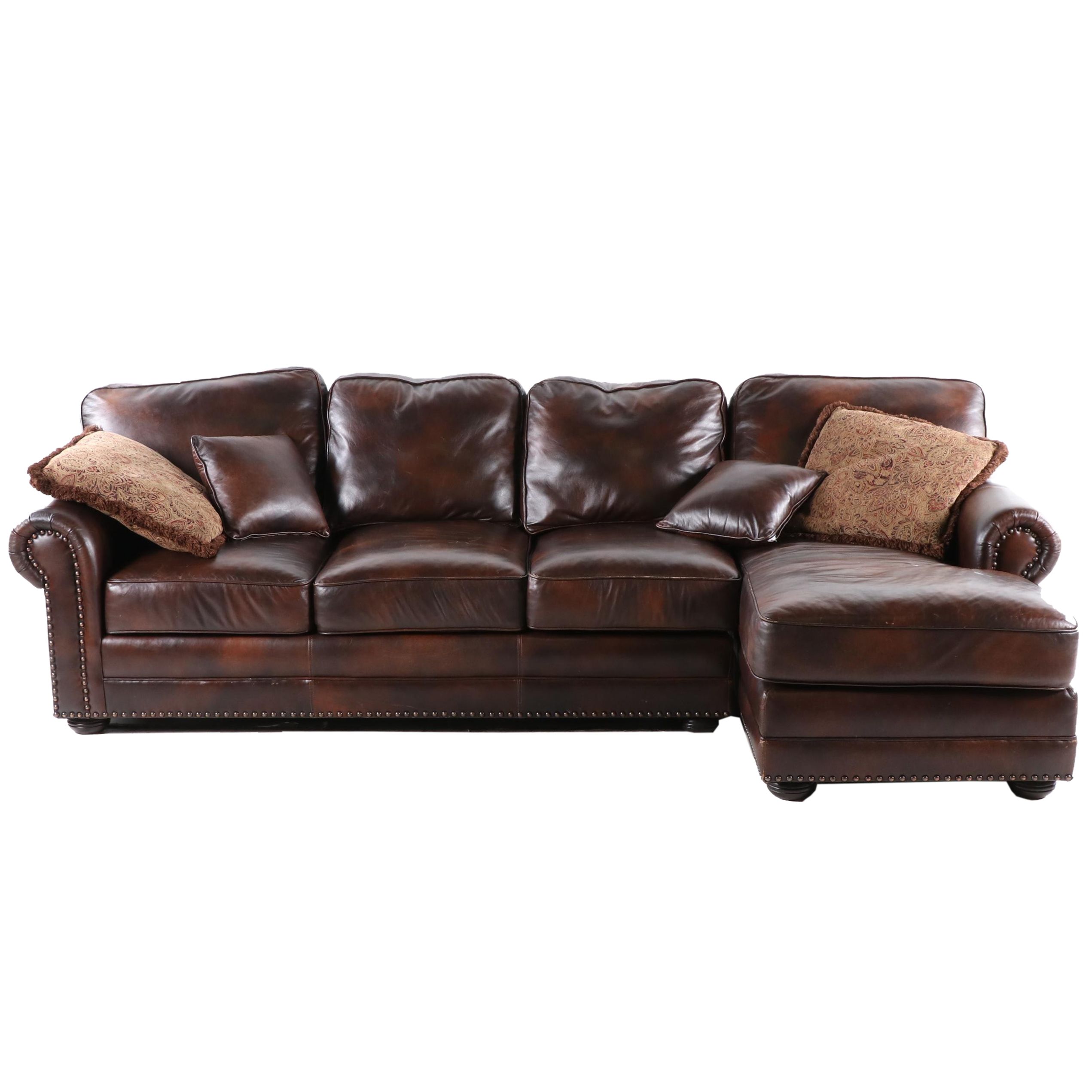 Contemporary Brown Leather Sectional Sofa With Nailhead Trim