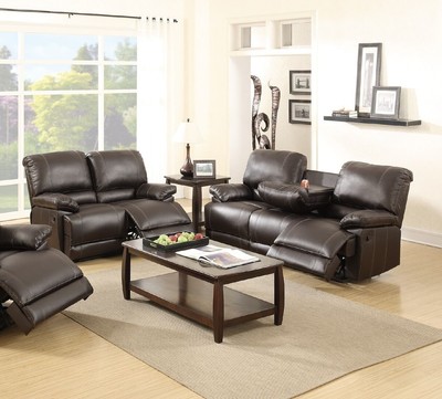 Modern 2pc Motion Sofa Set Espresso Bonded Leather Sofa Plush Couch Console Home Ebay
