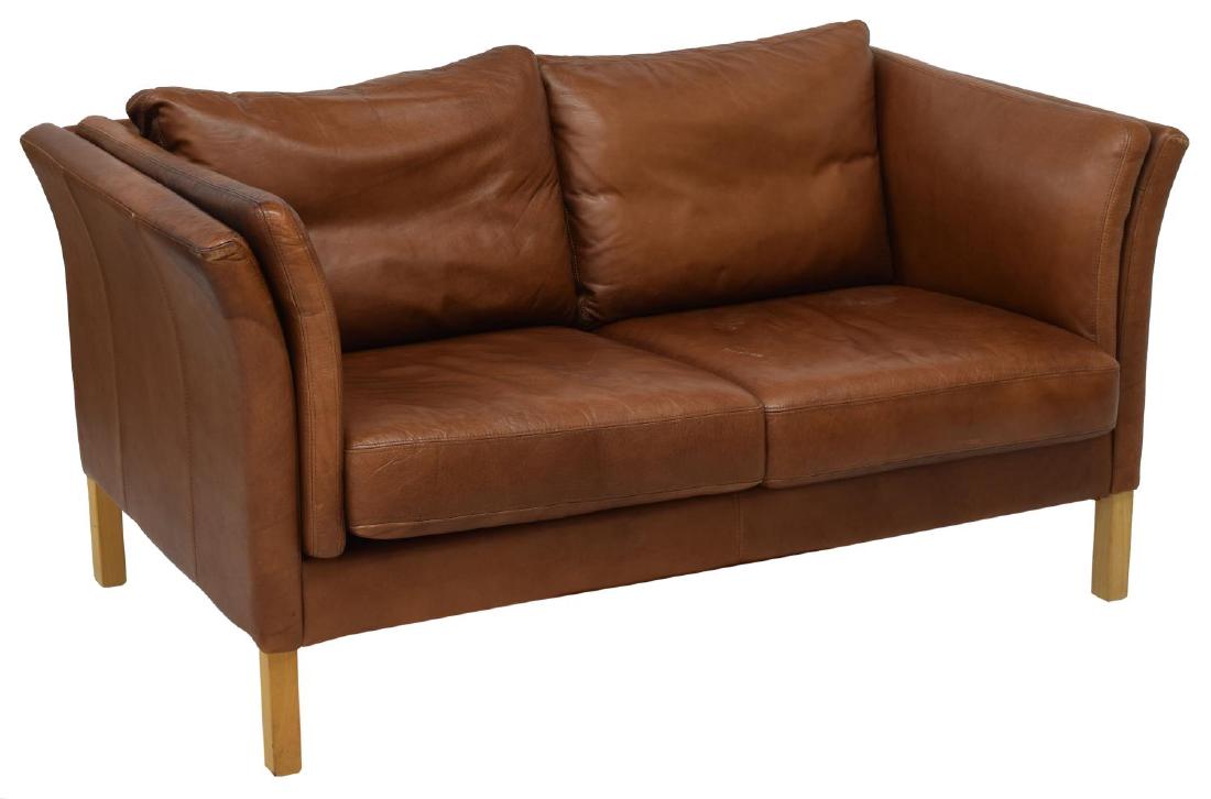 Danish Mid Century Modern 2 Seat Brown Leather Sofa At 1stdibs