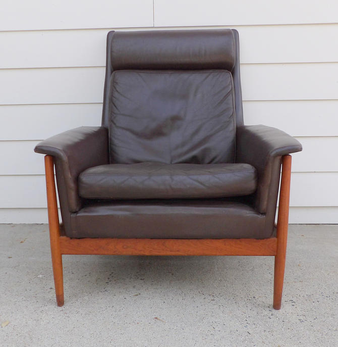 Distressed Leather Teak Lounge Or Easy Chair Mid Century