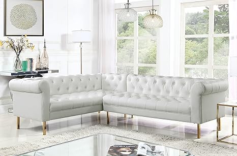 Iconic Home Giovanni Left Facing Sectional Sofa L Shape Pu Leather Upholstered Button Tufted Roll Arm Design Solid Gold Tone Metal Legs Modern