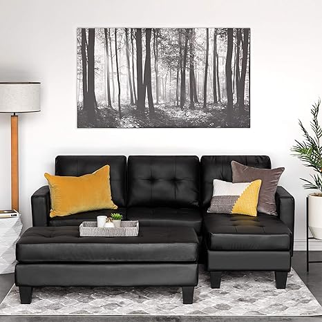 Best Choice Products Tufted Faux Leather 3 Seat L Shape Sectional Sofa Couch Set W Chaise Lounge Ottoman Coffee Table Bench Black