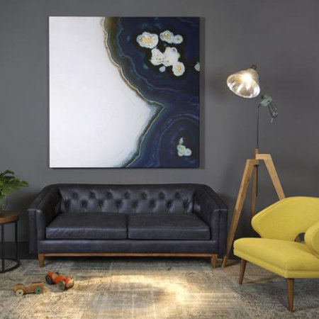 72 L Kent Sofa Button Tufted Black Leather Modern Styling Nail Head Detail